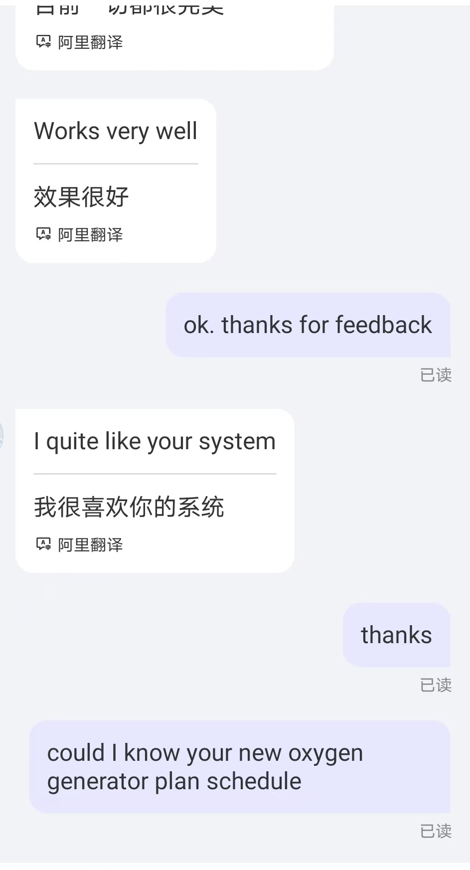 Generator oksigen LMO Jiangsu Luoming menggunakan teknologi Pressure Swing Adsorpsi (PSA) yang canggih. Pabrik produksi oksigen PSA menggunakan udara bersih dan bertekanan sebagai bahan baku dan saringan molekuler zeolit berkualitas tinggi sebagai adsorben. Dalam kondisi tekanan terkendali, sistem memisahkan oksigen dari udara bertekanan kering dan murni melalui proses adsorpsi tekanan dan desorpsi dekompresi dalam adsorben. Proses ini memastikan produksi oksigen medis dengan kemurnian tinggi secara efisien dan andal. Karena efek aerodinamisnya, laju difusi nitrogen dalam pori-pori saringan molekuler zeolit jauh lebih tinggi dibandingkan oksigen. Nitrogen lebih disukai diserap oleh saringan molekuler zeolit, dan oksigen diperkaya dalam fase gas untuk membentuk oksigen jadi. Dan kemudian dengan dekompresi ke tekanan atmosfer, adsorben menyerap nitrogen dan kotoran lainnya, untuk mencapai regenerasi. Umumnya, dua menara adsorpsi dipasang dalam sistem, satu menara menyerap oksigen, menara lainnya regenerasi desorpsi, melalui pengontrol program PLC untuk mengontrol pembukaan dan penutupan katup pneumatik, sehingga kedua menara bergantian bersirkulasi, sehingga memperoleh oksigen dengan kemurnian tinggi (93% ±2% atau 99,5%).