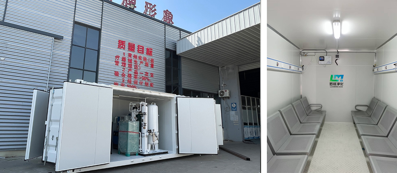 Jiangsu Luoming dapat menyediakan berbagai jenis generator oksigen medis sesuai dengan situasi aktual pelanggan: generator oksigen medis tipe kontainer/trailer/kotak, kendaraan bar oksigen bergerak (termasuk area produksi oksigen dan area penyerapan oksigen), stasiun oksigen, dll. Generator juga tersedia di area dengan pasokan listrik yang tidak mencukupi.