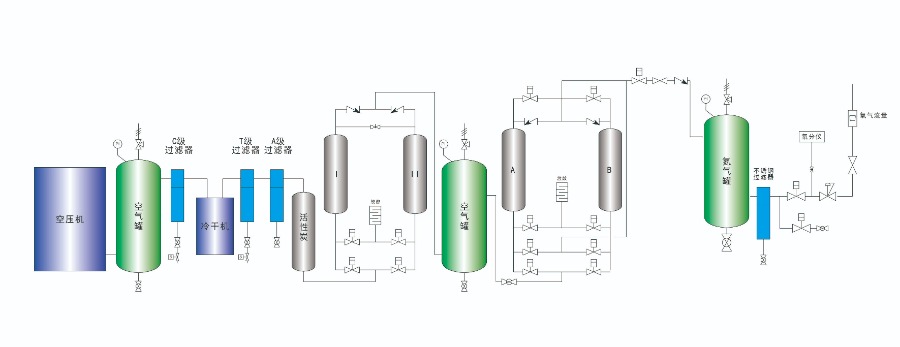 Pada menara adsorpsi saringan molekuler, prinsip kerja adsorpsi tekanan dan desorpsi dekompresi digunakan untuk memisahkan oksigen dan nitrogen dalam "udara terkompresi". Merupakan proses fisik, dilakukan pada suhu kamar dan tidak menimbulkan pencemaran lingkungan.